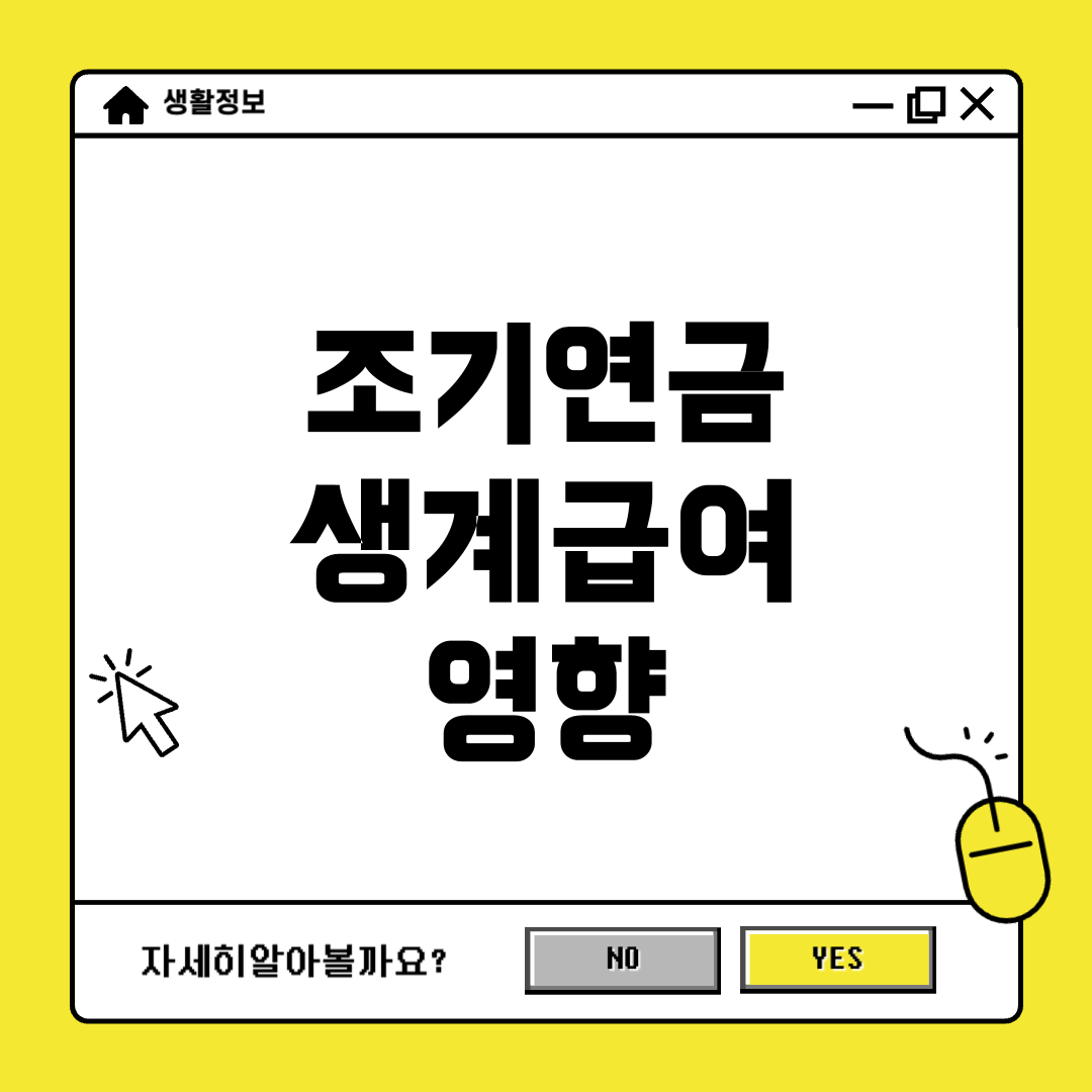 조기연금 수령이 생계급여 수급자에 미치는 영향과 관련하여 궁금해하시는 분들이 많습니다.